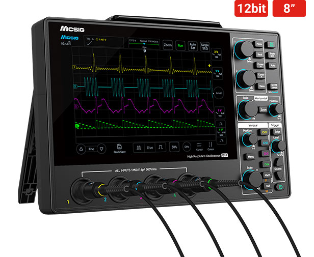 Осциллограф Micsig MHO1N представляет собой ультрапортативный профессиональный прибор высокого разрешения, оснащенный высокоточным 12-битным АЦП. Модель обладает полосой пропускания до 200 МГц, 4 аналоговыми каналами, скоростью реального времени 1 Гвыб/с и глубиной памяти 110 Мточек. Эти высокопроизводительные параметры гарантируют точность каждого измерения и создают надежную основу для углубленного анализа сигналов.