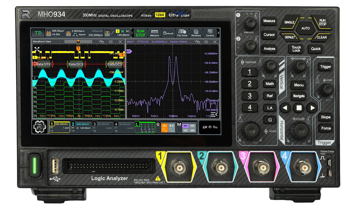 Серия MHO900 полностью переопределяет границы возможного в сегменте осциллографов начального уровня благодаря беспрецедентной производительности. Приборы этой серии обеспечивают аналоговую полосу пропускания до 800 МГц, легко справляясь с задачами тестирования высокоскоростных сигналов. Стандартные 4 аналоговых канала дают гибкость при отладке сложных систем. В основе — 12-битный АЦП с высоким разрешением, который обеспечивает в 16 раз больше деталей, чем традиционные 8-битные осциллографы, делая видимыми даже самые слабые аномалии сигнала. В сочетании с ультрадлинной памятью 500М точек (опционально) это гарантирует захват и анализ протяжённых участков сложных сигналов без потери деталей. С MHO900 вы уверенно справитесь с будущими измерительными задачами и совершите настоящий скачок — от «начального» к «мастерскому» уровню.