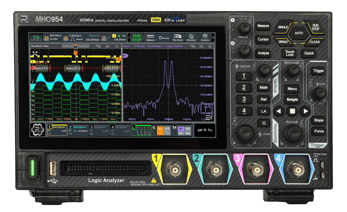 Серия MHO900 полностью переопределяет границы возможного в сегменте осциллографов начального уровня благодаря беспрецедентной производительности. Приборы этой серии обеспечивают аналоговую полосу пропускания до 800 МГц, легко справляясь с задачами тестирования высокоскоростных сигналов. Стандартные 4 аналоговых канала дают гибкость при отладке сложных систем. В основе — 12-битный АЦП с высоким разрешением, который обеспечивает в 16 раз больше деталей, чем традиционные 8-битные осциллографы, делая видимыми даже самые слабые аномалии сигнала. В сочетании с ультрадлинной памятью 500М точек (опционально) это гарантирует захват и анализ протяжённых участков сложных сигналов без потери деталей. С MHO900 вы уверенно справитесь с будущими измерительными задачами и совершите настоящий скачок — от «начального» к «мастерскому» уровню.