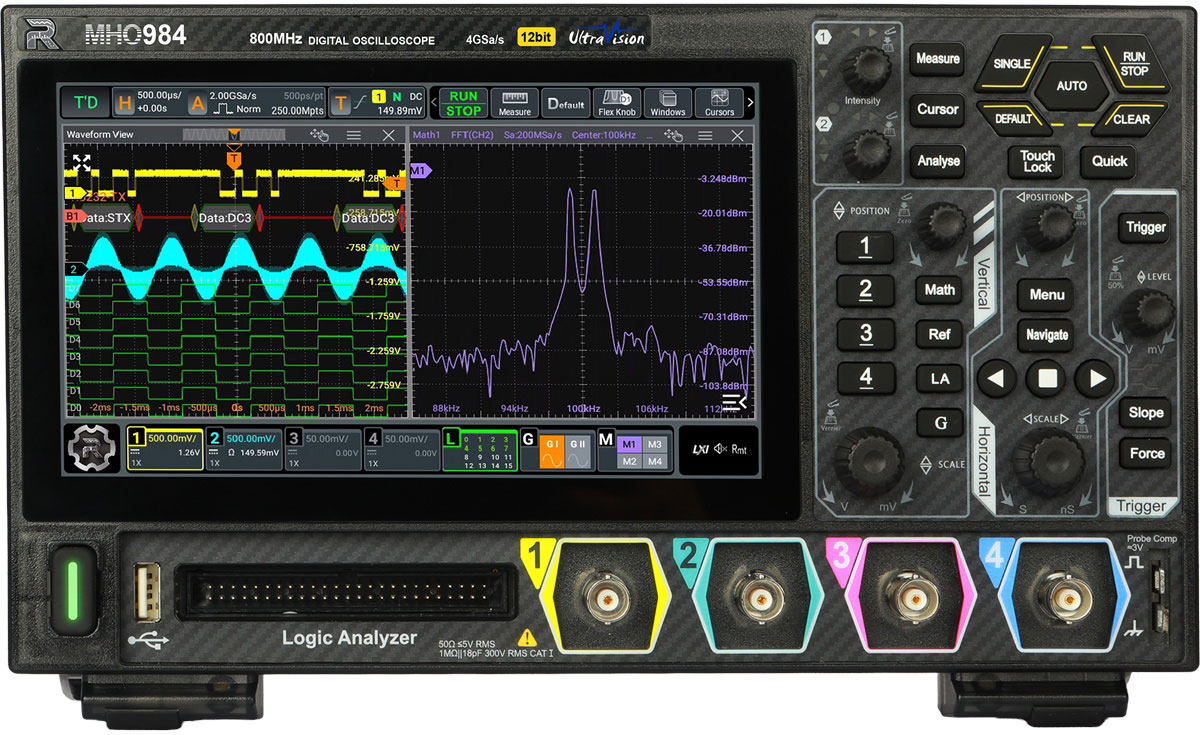 Серия MHO900 полностью переопределяет границы возможного в сегменте осциллографов начального уровня благодаря беспрецедентной производительности. Приборы обеспечивают аналоговую полосу пропускания до 800 МГц, легко справляясь с задачами тестирования высокоскоростных сигналов. Стандартные 4 аналоговых канала дают гибкость при отладке сложных систем. В основе — 12-битный АЦП с высоким разрешением, который обеспечивает в 16 раз больше деталей, чем традиционные 8-битные осциллографы, делая видимыми даже самые слабые аномалии сигнала. В сочетании с ультрадлинной памятью 500М точек (опционально) это гарантирует захват и анализ протяжённых участков сложных сигналов без потери деталей. С MHO900 вы уверенно справитесь с будущими измерительными задачами и совершите настоящий скачок — от «начального» к «мастерскому» уровню.