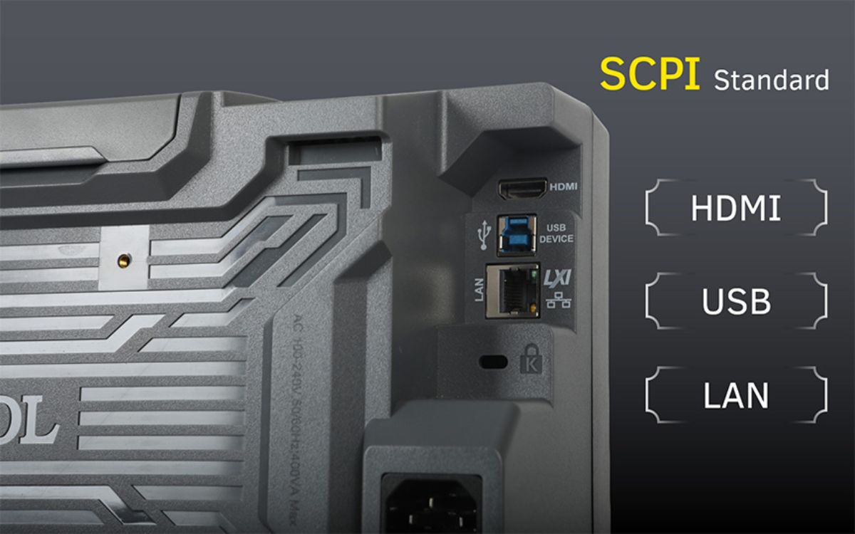 Устройство оснащено различными интерфейсами для удаленного управления, такими как USB, LAN и HDMI, и поддерживает стандартные команды SCPI. Это позволяет легко создавать автоматизированные измерительные системы и ускорять процесс разработки продукции.