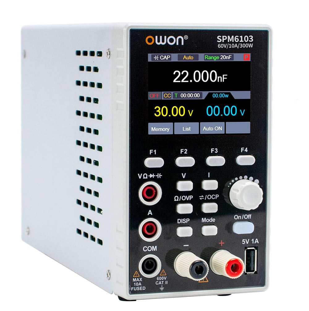 OWON SPM6103 - это одноканальный,программируемый, лабораторный, импульсный источник питания постоянного тока, c электрической мощностью 300 Вт, со встроенным цифровым мультиметром и выполненный в компактном корпусе.