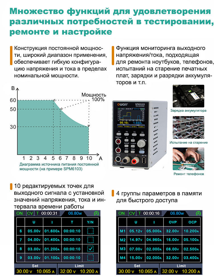 Инструкция на источники питания OWON серии SPM SPM3051, SPM6053, SPM3103, SPM6103, SPM8104, SPM8205 |