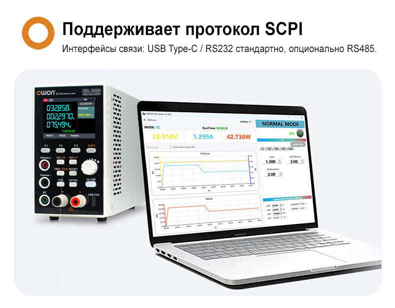 - Стандартные интерфейсы: RS232 и RS485 с поддержкой протокола SCPI