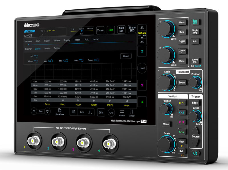 Осциллограф Micsig MHO1N представляет собой ультрапортативный профессиональный прибор высокого разрешения, оснащенный высокоточным 12-битным АЦП. Модель обладает полосой пропускания до 200 МГц, 4 аналоговыми каналами, скоростью реального времени 1 Гвыб/с и глубиной памяти 110 Мточек. Эти высокопроизводительные параметры гарантируют точность каждого измерения и создают надежную основу для углубленного анализа сигналов.